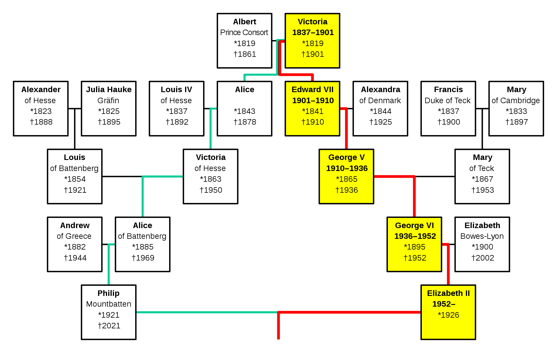 Es geht aber weiter: Wusstest du, dass die Queen und Prinz Philip sogar Blutsverwandte waren? Sie sind Cousins bzw. Cousinen dritten Grades und sind beide Nachfahren von Queen Victoria (1819-1901, Quelle)! Nicht nur das: Wahrscheinlich sind alle Royals der europäischen Königshäuser miteinander verwandt (Quelle)! Wer mehr darüber wissen will, sollte sich unbedingt mal diesen Beitrag „The Untold Truth Of Prince Philip“ vom britischen Magazin „Nicki Swift“ von März diesen Jahres anschauen.