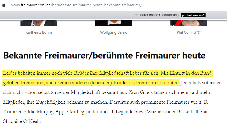Ich denke, alle Freimaurer in den niederen Rängen haben wirklich erstrebenswerte Ansprüche, Ziele und Werte. Ein Freimaurer der unteren Ränge vermuten keine dunklen Absichten hinter dieser Gesellschaft, eine Art Aristokratie, gelenkt durch „geheime Obere“, schließlich ist er doch mitten drin – er würde es mitbekommen. Gleichzeitig genießen Freimaurer die angepriesenen Vorteile der Bruderschaft und zudem wird doch alles über sie und ihre Motive auf Wissensplattformen wie Wikipedia veröffentlicht. Inzwischen gibt es in ihren Logen selbst soetwas wie einen Tag der offenen Tür. Jeder kann sich selbst ein Bild über die Bruderschaft machen und ihnen sogar beitreten (heutzutage ohne todesmutige Aufnahmerituale). Wenn sich Verdächtiges in ihren Reihen abspielen sollte, hätte es der aufmerksame Freimaurer mitbekommen und würden darüber berichten.